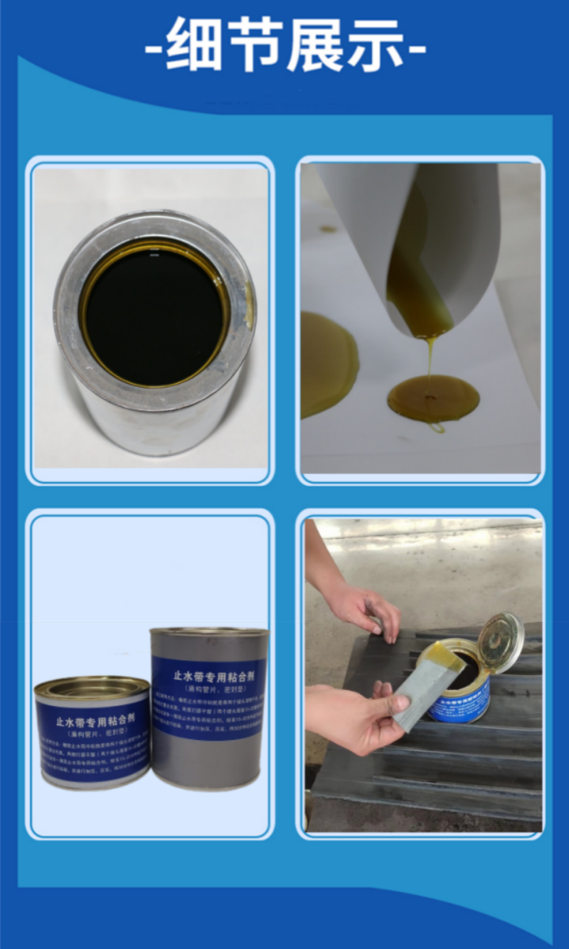 胶水粘接使用方法 1.将粘接物的表面进行预处理,清除粘接物表面的油污、水分、灰尘等杂质。 2.用专业刮板及毛刷等涂胶工具在被粘物表面上均匀涂胶(渗透性强的材料涂抹两遍) 3.如粘接橡胶止水带接头时先把两个接头清理干净,将胶梗处削平,用磨光机打磨出新茬来,打磨平整后再进行粘接,接头两面均匀涂抹上一薄层胶水即可,晾至15分钟左右后,请及时将两个接头进行粘接,用力压实,压实后等待15分钟左右至粘接成功。